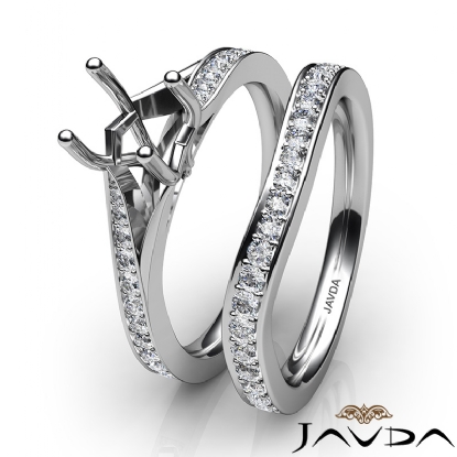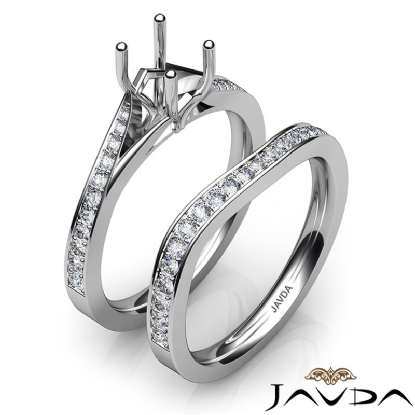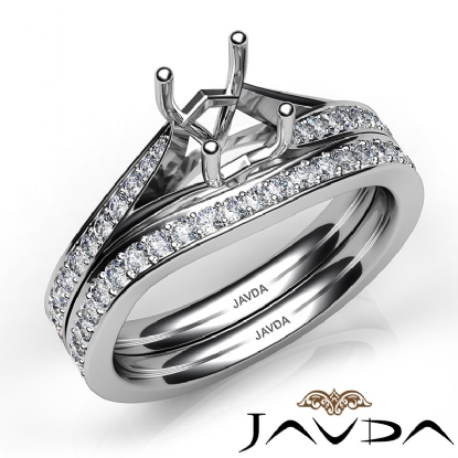 Pave Diamond Engagement Ring Cushion SemiMount Bridal Set 18k W Gold (0.9Ct. tw.)