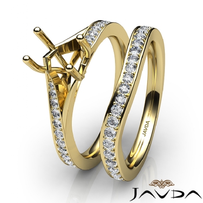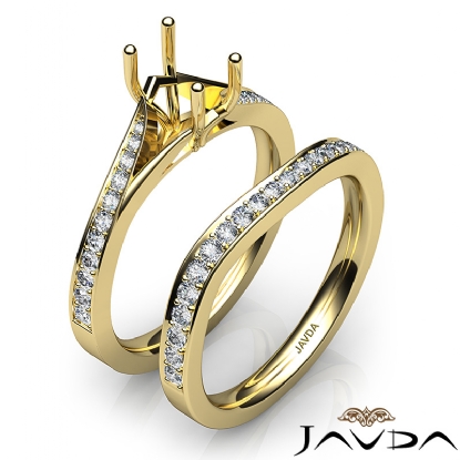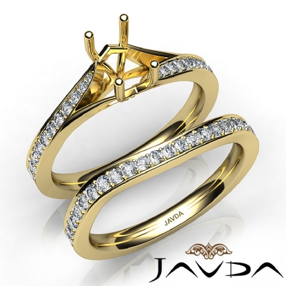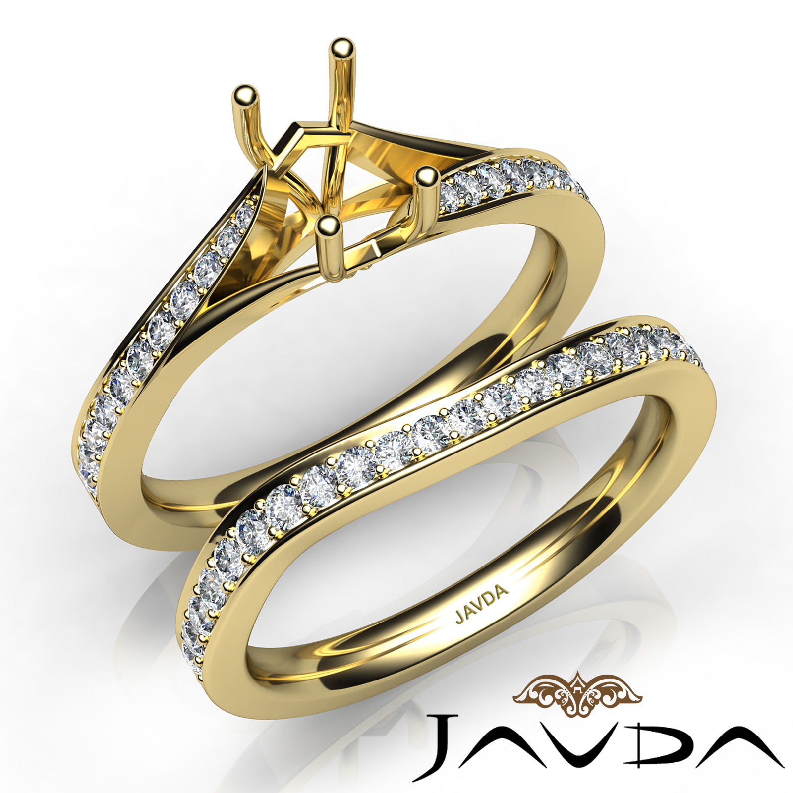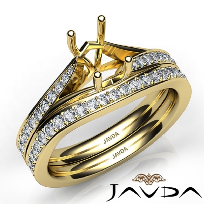 Pave Diamond Engagement Ring Emerald SemiMount Bridal Set 18k Gold (0.9Ct. tw.)
