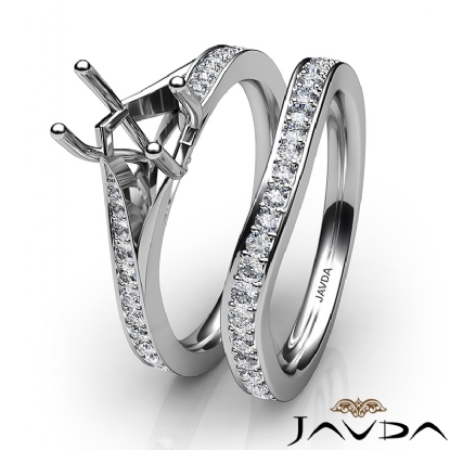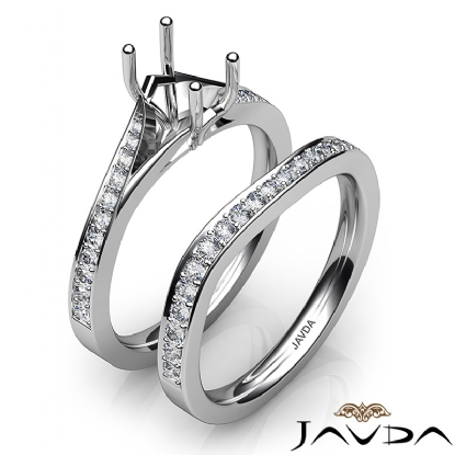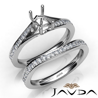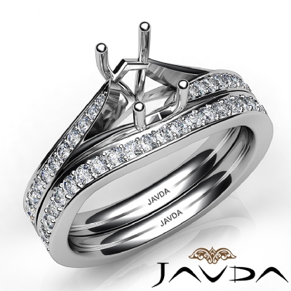 Pave Diamond Engagement Ring Emerald SemiMount Bridal Set Platinum (0.9Ct. tw.)