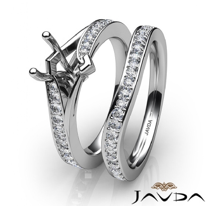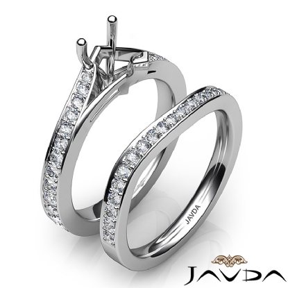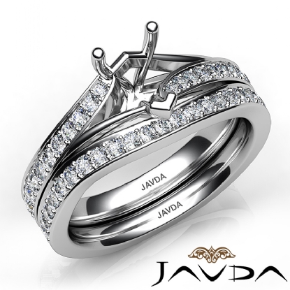 Pave Diamond Engagement Ring Heart Semi Mount Bridal Set 18k W Gold (0.9Ct. tw.)