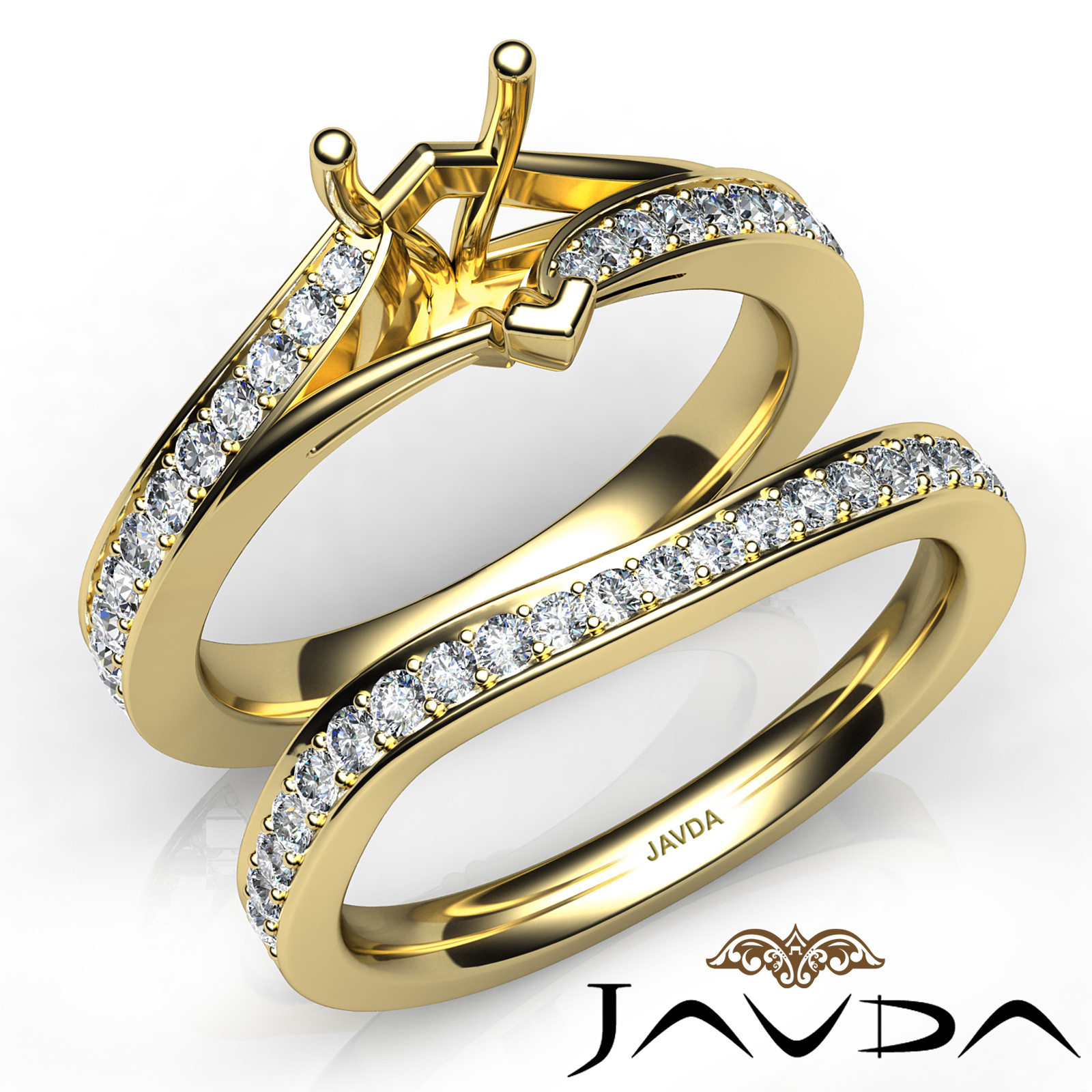 Pave Diamond Engagement Ring Heart Semi Mount Bridal Set 18k Gold (0.9Ct. tw.)