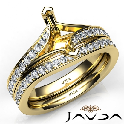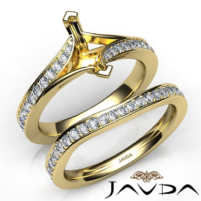 Pave Diamond Engagement Ring Marquise Semi Mount Bridal Set 14k Gold (0.9Ct. tw.)