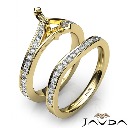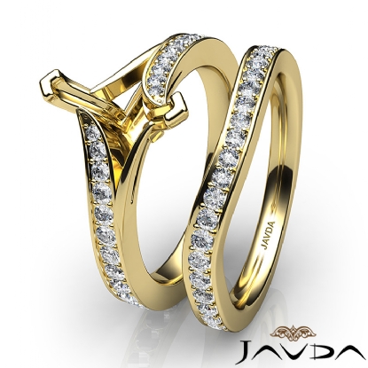 Truly extraordinary, this engagement ring and matching band feature marquise semi mount in pave setting and round pave set diamonds on the shank. This . bridal set is made in 14k Gold Yellow. (0.9Ct. tw.)