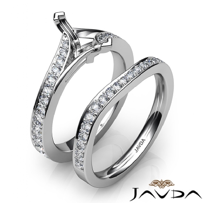 Pave Diamond Engagement Ring Marquise Semi Mount Bridal Set Platinum (0.9Ct. tw.)