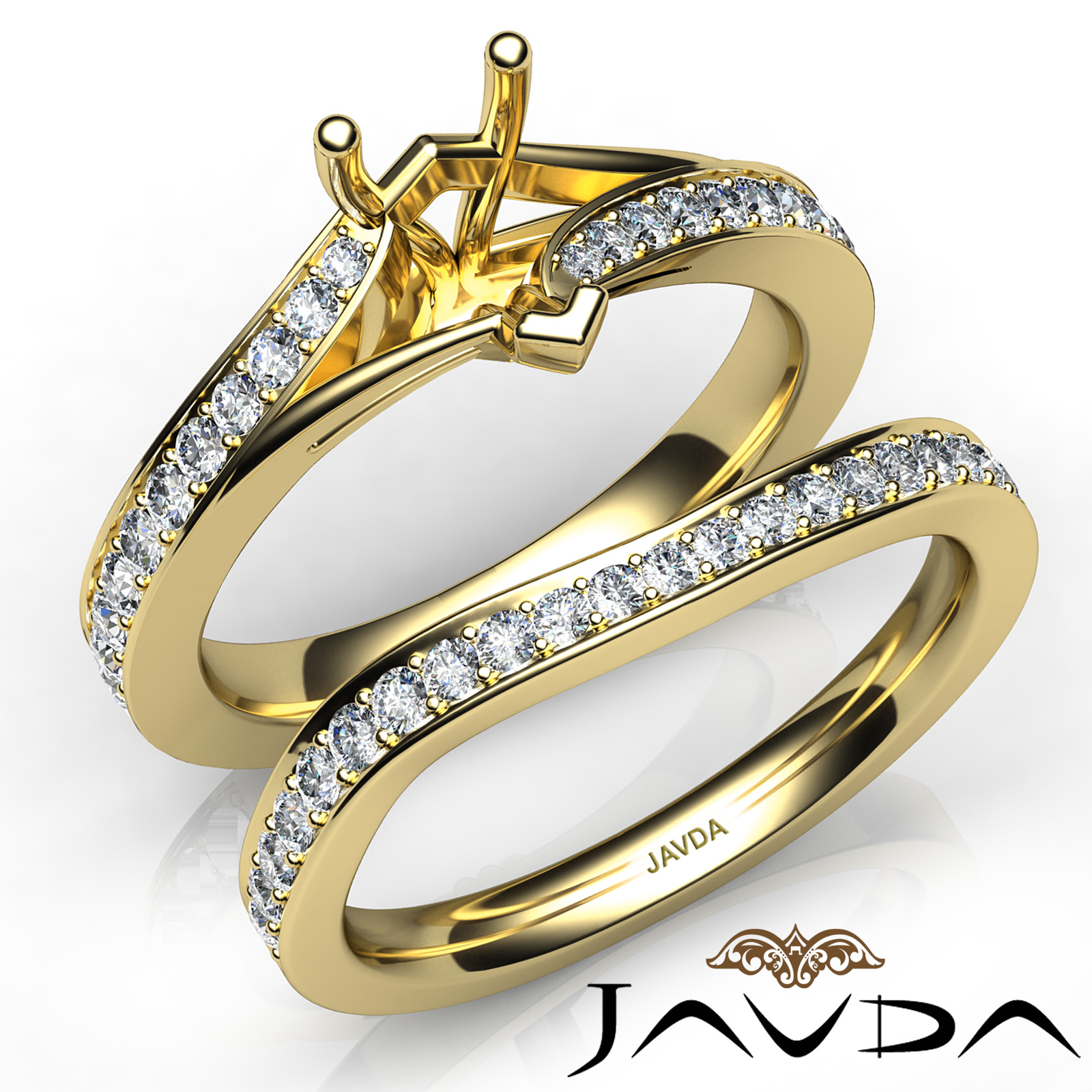 Pave Diamond Engagement Ring Pear Semi Mount Bridal Set 14k Gold (0.9Ct. tw.)