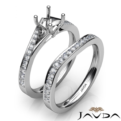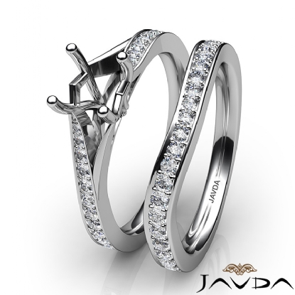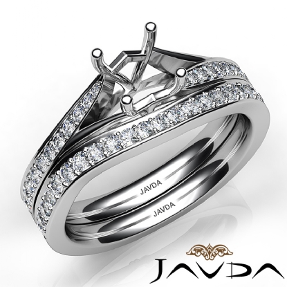 Pave Diamond Engagement Ring Princess Semi Mount Bridal Set 18k W Gold (0.9Ct. tw.)