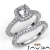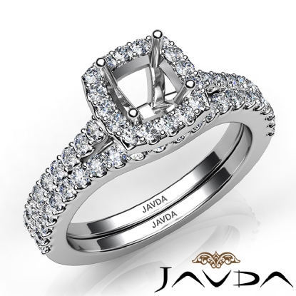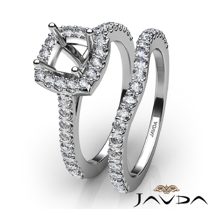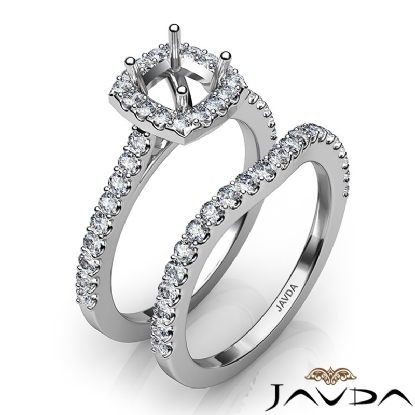 Diamond Cushion Cut Semi Mount Engagement Ring Bridal Set 18k W Gold (1Ct. tw.)