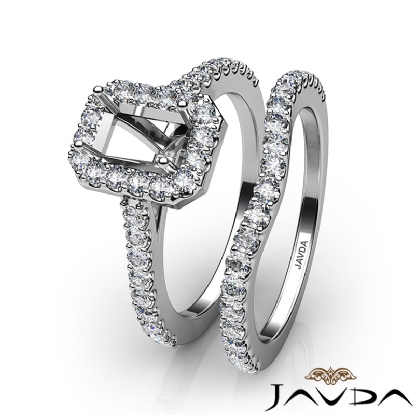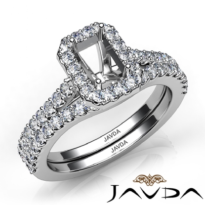 Diamond Emerald Cut Semi Mount Engagement Ring Bridal Set Platinum (1Ct. tw.)