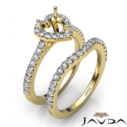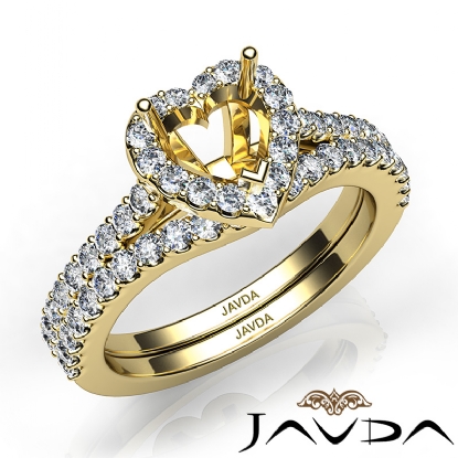Create a breathtaking moment with this heart semi mount . bridal set, showcasing a diamond-laden shank and halo in U prong setting, with a matching band. This engagement ring is framed against enduring 14k Gold Yellow. (1Ct. tw.)