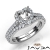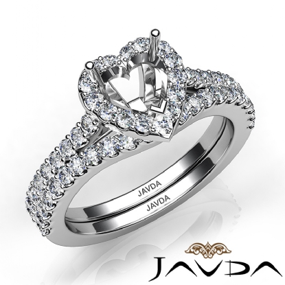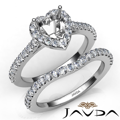 Create a breathtaking moment with this heart semi mount . bridal set, showcasing a diamond-laden shank and halo in U prong setting, with a matching band. This engagement ring is framed against enduring 18k Gold White. (1Ct. tw.)