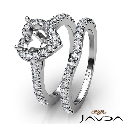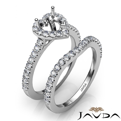 Diamond Heart Cut Semi Mount Engagement Ring Bridal Set 18k W Gold (1Ct. tw.)