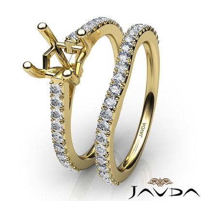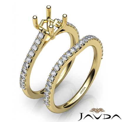 Get mesmerized with this asscher cut semi mount . bridal set, showcasing a diamond-laden V split Prong setting in shank, with a matching band. This engagement ring is framed against enduring 18k Gold Yellow. (0.8Ct. tw.)