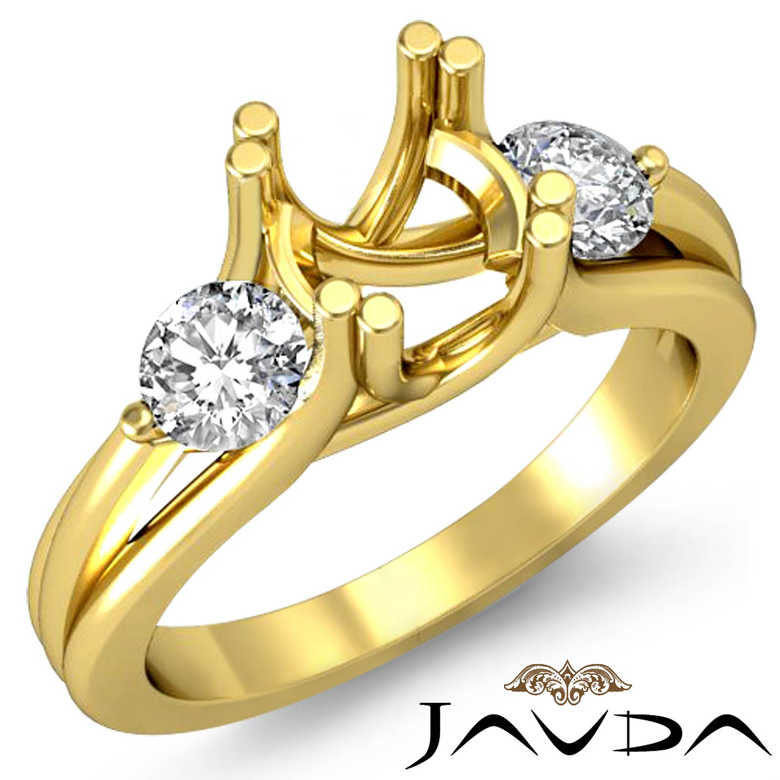 Round Diamond Three Stone Anniversary & Engagement Criss Cross Setting Ring made in 14k Gold Yellow for Round Cut in a Semi Mount. (0.5Ct. tw.)