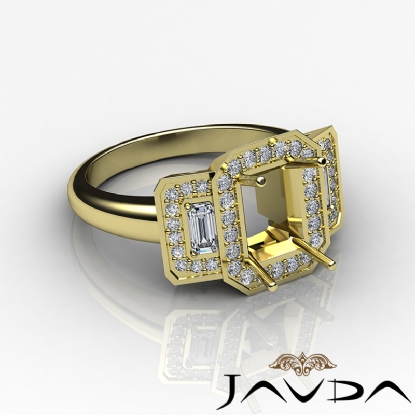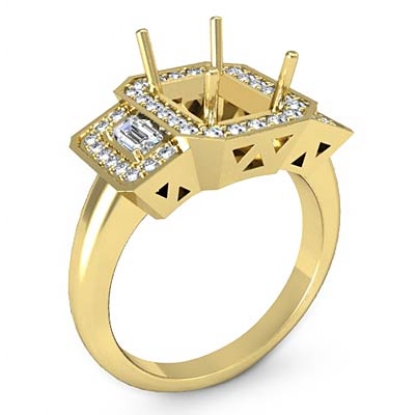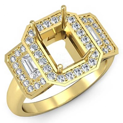 Round Diamond 3 Stone Anniversary Emerald Semi Mount Ring Setting 18k Gold (0.95Ct. tw.)