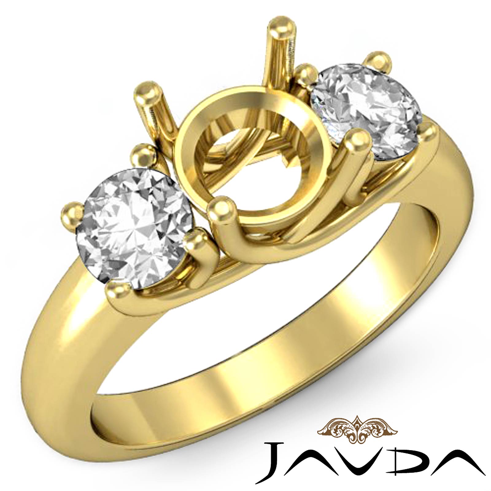 Side 0.80 ctw. Round Diamond Round Brilliant Cut Diamond Women's 3 Stone Engagement Ring Criss Cross Prong Setting made in 14k Gold Yellow for Round Cut in a Semi Mount. (0.8Ct. tw.)