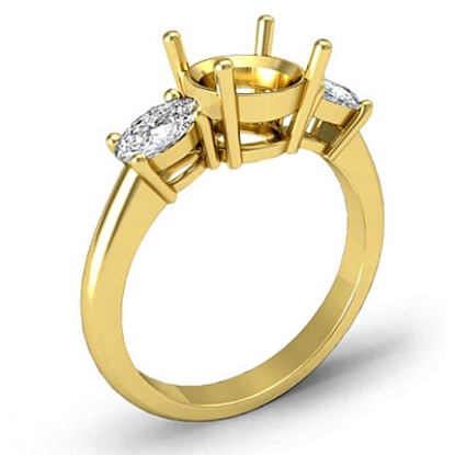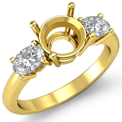 Oval Cut Diamond 3 Stone Engagement Ring Setting for Round Diamond Semi Mount made in 18k Gold Yellow. (0.5Ct. tw.)
