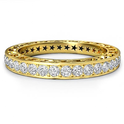Round Cut Diamond Eternity Wedding Ring Prong Set With Star all over in 18k Gold Yellow Band. (0.45Ct. tw.)
