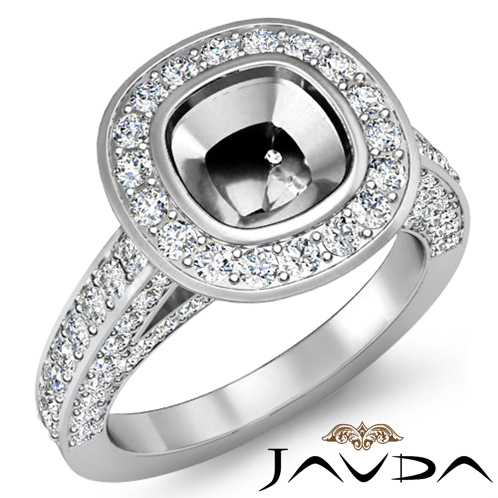 Diamond Engagement Ring Cushion Semi Mount Platinum Halo (1.7Ct. tw.)