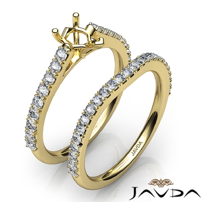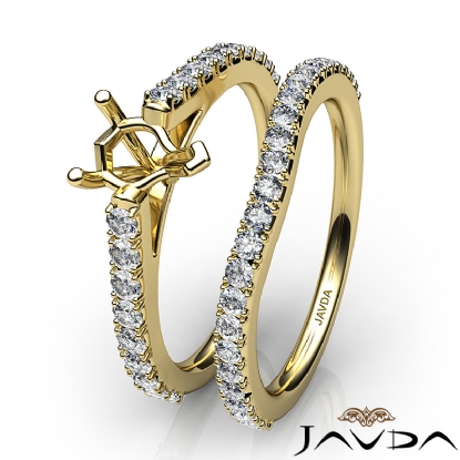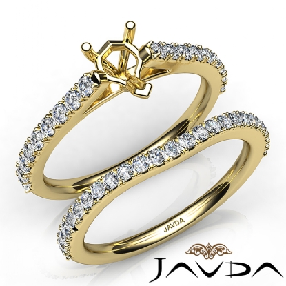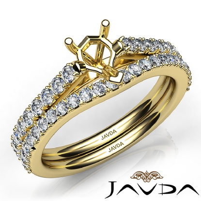 Get mesmerized with this heart cut semi mount . bridal set, showcasing a diamond-laden V split Prong setting in shank, with a matching band. This engagement ring is framed against enduring 14k Gold Yellow. (0.8Ct. tw.)