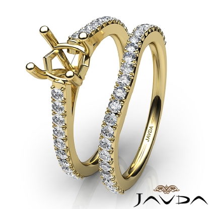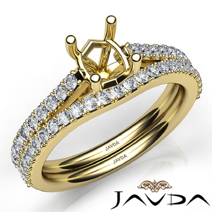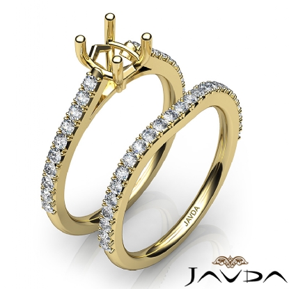 Get mesmerized with this oval cut semi mount . bridal set, showcasing a diamond-laden V split Prong setting in shank, with a matching band. This engagement ring is framed against enduring 18k Gold Yellow. (0.8Ct. tw.)