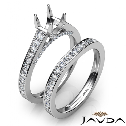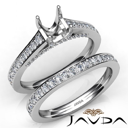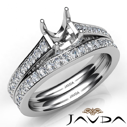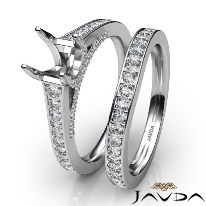 Asscher Pave Diamond Engagement Semi Mount Ring Bridal Sets Platinum (1.25Ct. tw.)