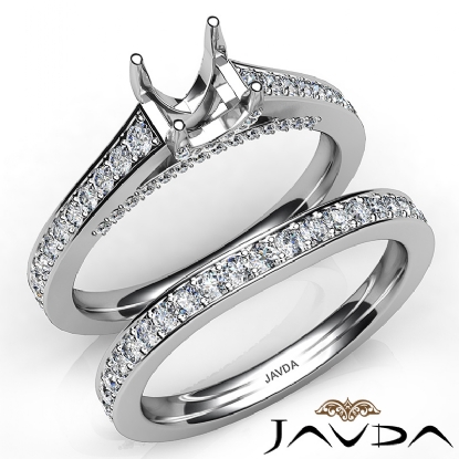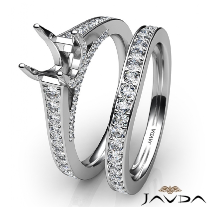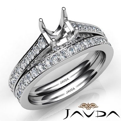 Cushion Diamond Engagement Semi Mount Ring Bridal Sets 18k W Gold (1.25Ct. tw.)