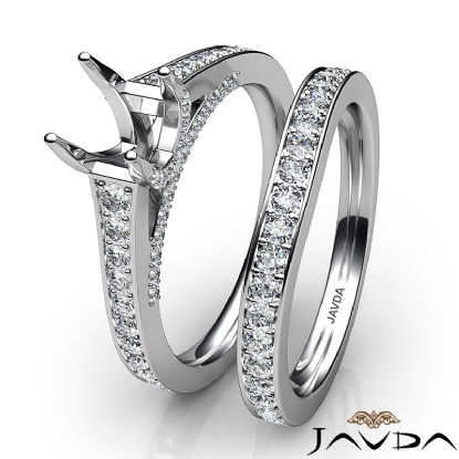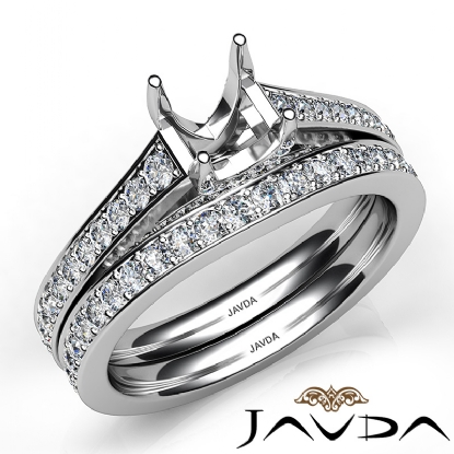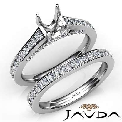 Oval Pave Diamond Engagement Semi Mount Ring Bridal Sets Platinum (1.25Ct. tw.)