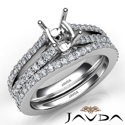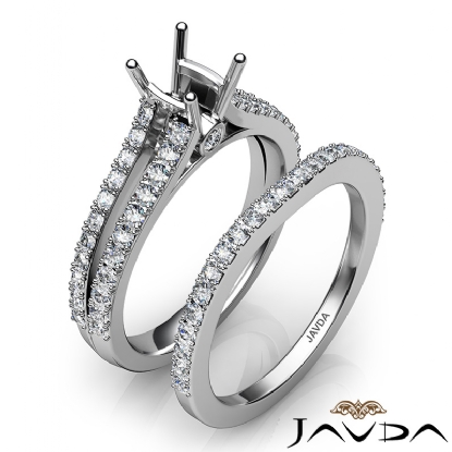 Prong Diamond Engagement Ring Cushion Bridal Set 18k W Gold Semi Mount (1.1Ct. tw.)