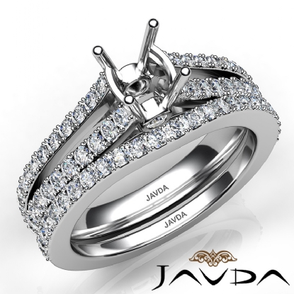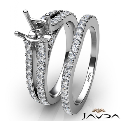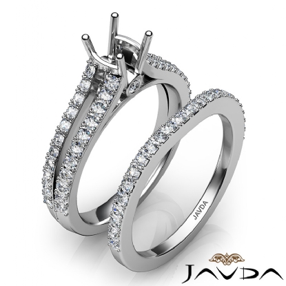 Prong Diamond Engagement Ring Bridal Set 18k W Gold Cushion Cut Semi Mount (1.1Ct. tw.)