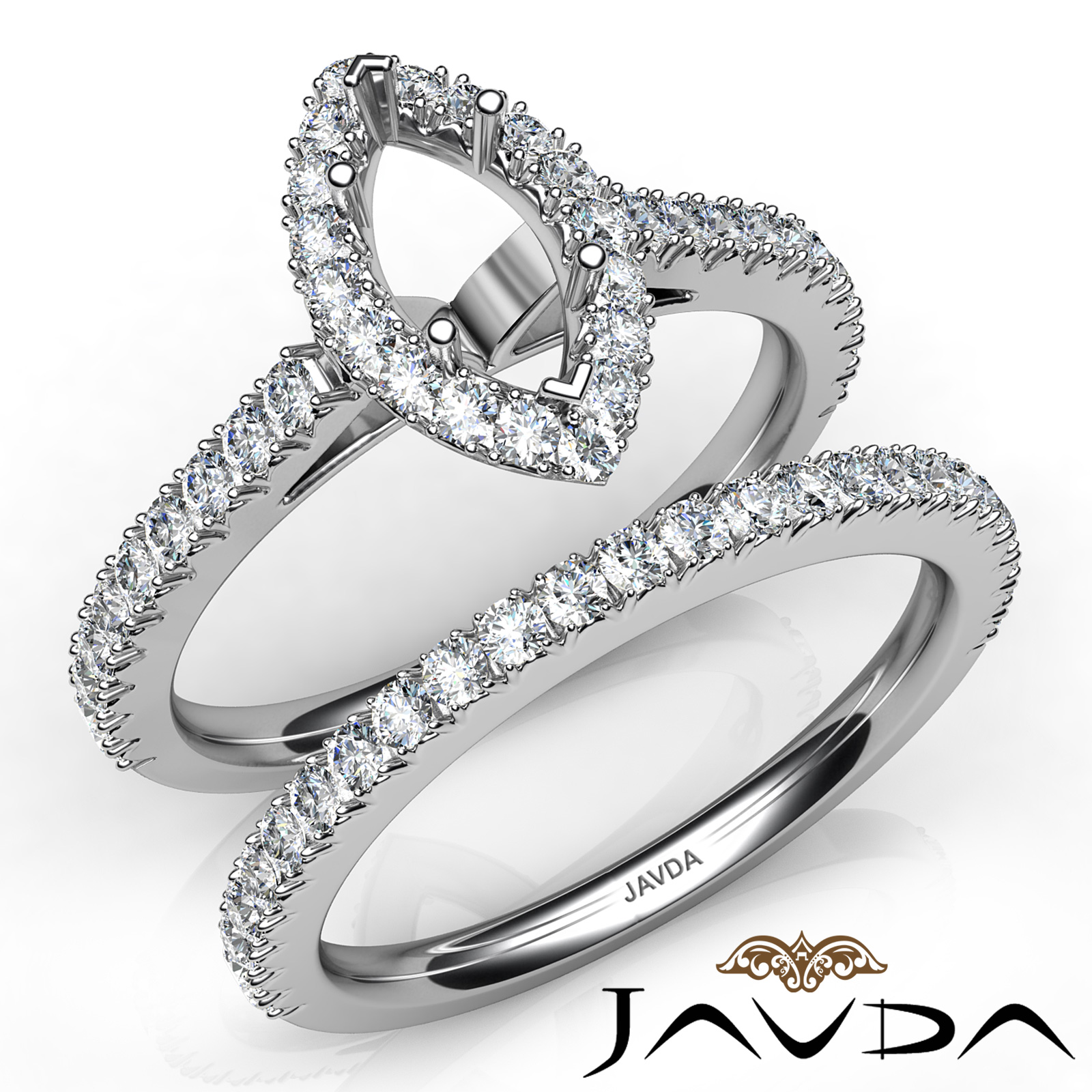 French V Cut Pave Diamond Engagement Ring Marquise Bridal Sets 18k W Gold (1.5Ct. tw.)