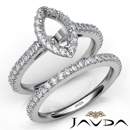 French V Cut Pave Diamond Engagement Ring Marquise Bridal Sets Platinum (1.5Ct. tw.)