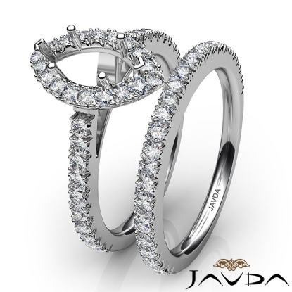 Gorgeous with a touch of vintage, this Platinum 950 semi mount marquise engagement ring and matching band, features french cut pave round set diamonds. This bridal set weighs . (1.5Ct. tw.)