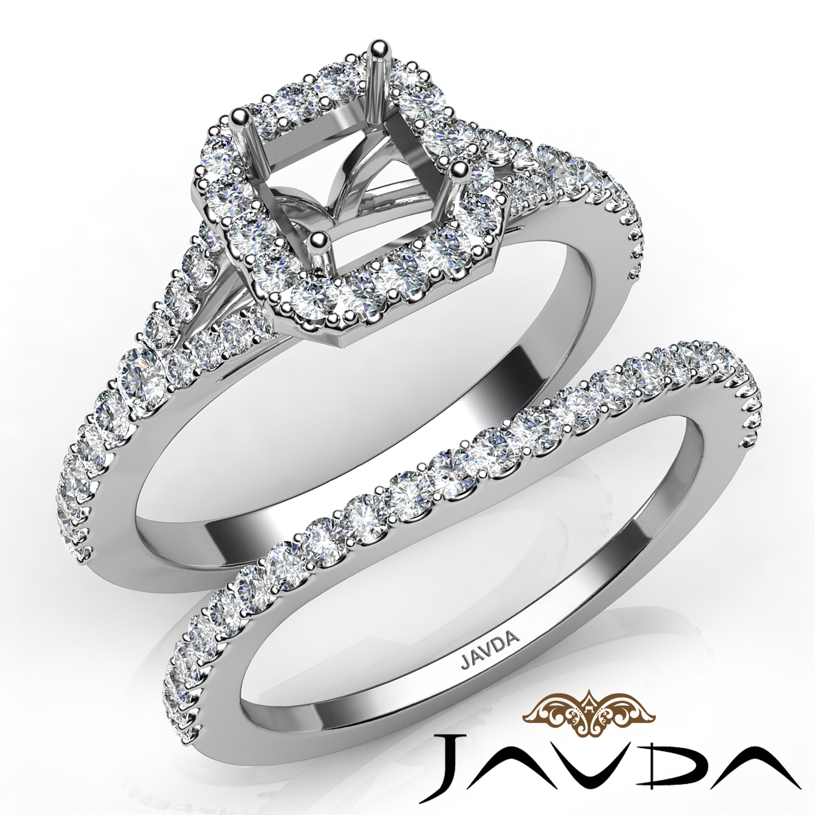U Prong Diamond Engagement Ring Asscher Semi Mount Bridal Set Platinum (0.8Ct. tw.)