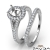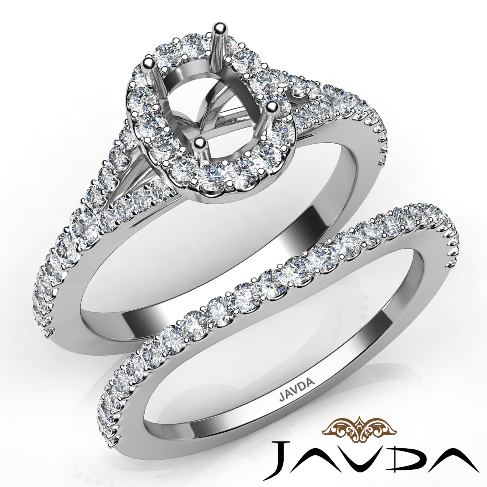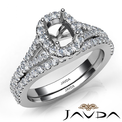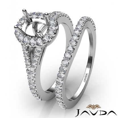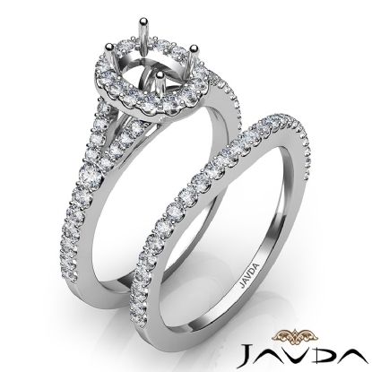 Gorgeous! This bridal set is such a stunner! It consists of a cushion semi mount engagement ring and a matching band, featuring U cut Prong set diamonds on halo and the shank. This beautiful diamond set is made in Platinum 950. (0.8Ct. tw.)