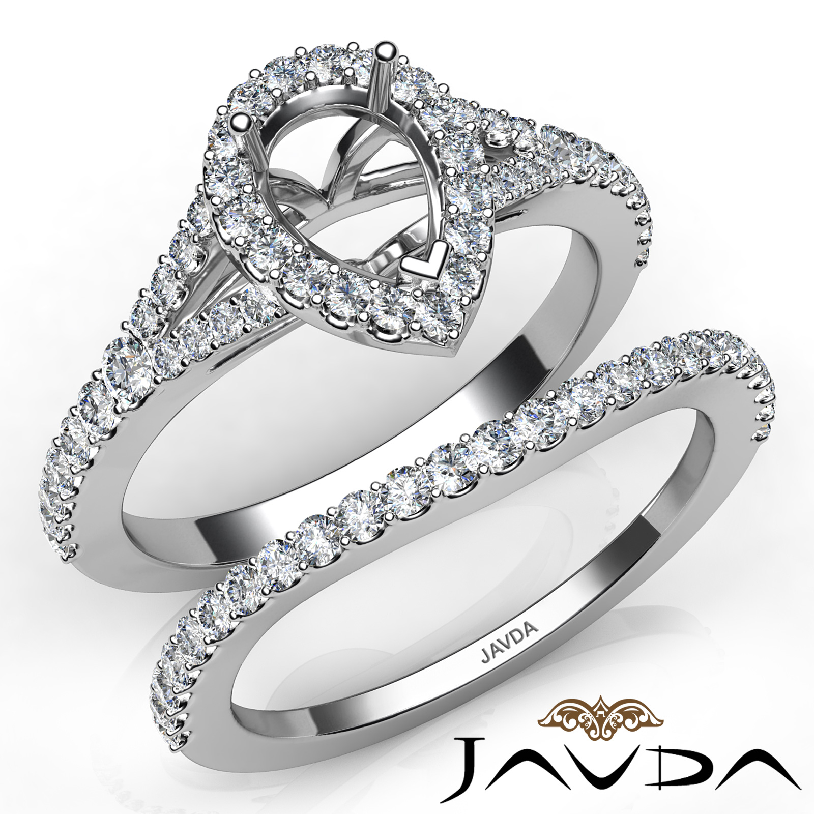 U Prong Diamond Engagement Ring Pear Semi Mount Bridal Set 18k W Gold (0.8Ct. tw.)