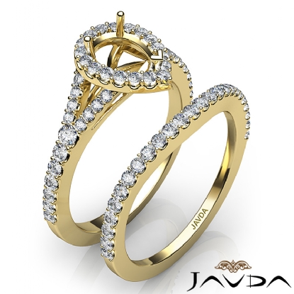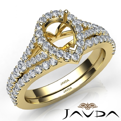 Gorgeous! This bridal set is such a stunner! It consists of a pear semi mount engagement ring and a matching band, featuring U cut Prong set diamonds on halo and the shank. This beautiful diamond set is made in 18k Gold Yellow. (0.8Ct. tw.)