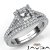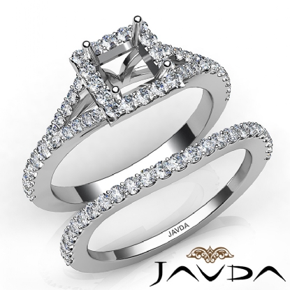 Gorgeous! This bridal set is such a stunner! It consists of a princess semi mount engagement ring and a matching band, featuring U cut Prong set diamonds on halo and the shank. This beautiful diamond set is made in 18k Gold White. (0.8Ct. tw.)