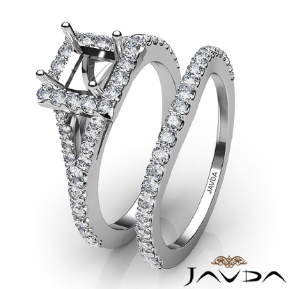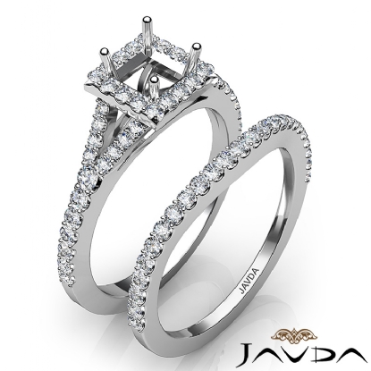 U Prong Diamond Engagement Ring Princess Semi Mount Bridal Set 18k W Gold (0.8Ct. tw.)