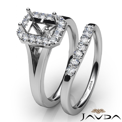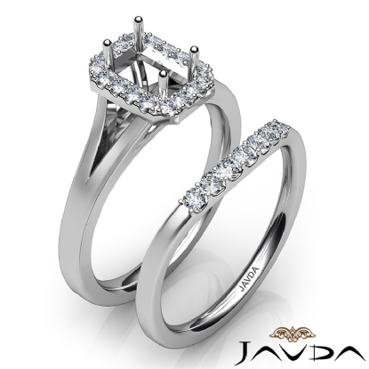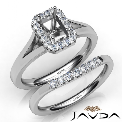 Emerald Diamond U Prong Engagement Semi Mount Ring Bridal Set Platinum (0.45Ct. tw.)
