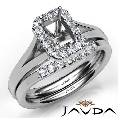 This Elegant & Beautiful bridal set is such a stunner! It consists of a emerald semi mount engagement ring and a matching band, featuring U Cut Prong set diamonds on halo and the shank. This beautiful diamond set is made in Platinum 950. (0.45Ct. tw.)