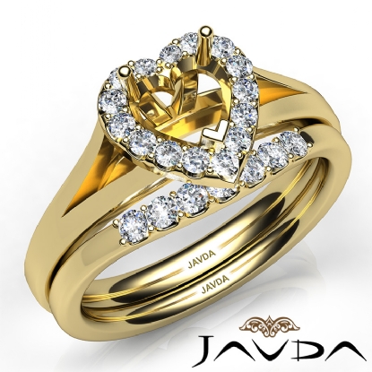 Heart Diamond U Prong Engagement Semi Mount Ring Bridal Set 14k Gold (0.42Ct. tw.)