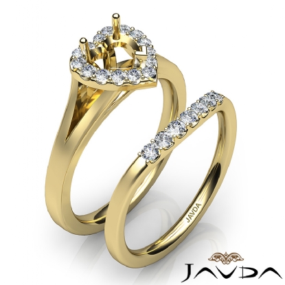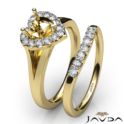 This Elegant & Beautiful bridal set is such a stunner! It consists of a heart semi mount engagement ring and a matching band, featuring U Cut Prong set diamonds on halo and the shank. This beautiful diamond set is made in 14k Gold Yellow. (0.42Ct. tw.)