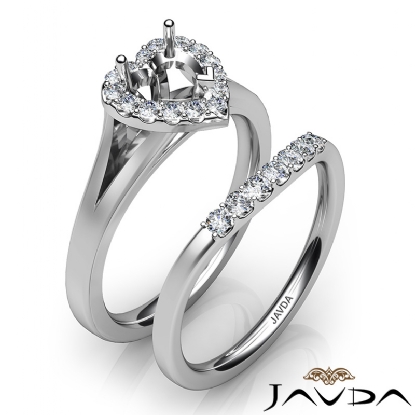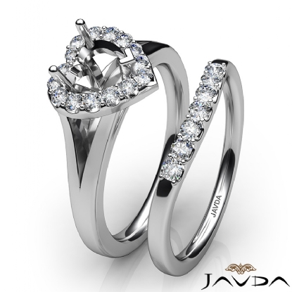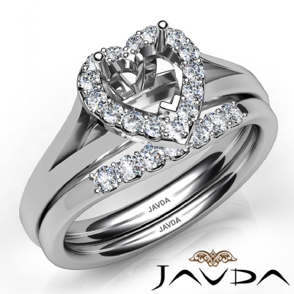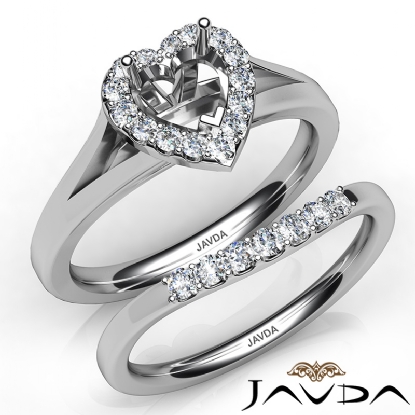 Heart Diamond U Prong Engagement Semi Mount Ring Bridal Set Platinum (0.42Ct. tw.)