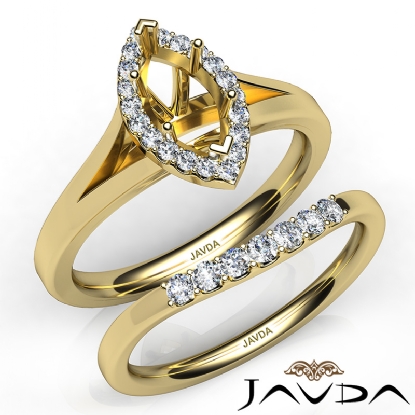 Marquise Diamond U Prong Engagement Semi Mount Ring Bridal Set 14k Gold (0.4Ct. tw.)