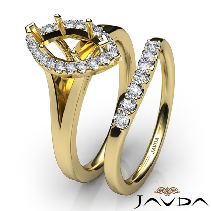 This Elegant & Beautiful bridal set is such a stunner! It consists of a marquise semi mount engagement ring and a matching band, featuring U Cut Prong set diamonds on halo and the shank. This beautiful diamond set is made in 14k Gold Yellow. (0.4Ct. tw.)