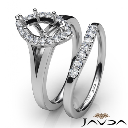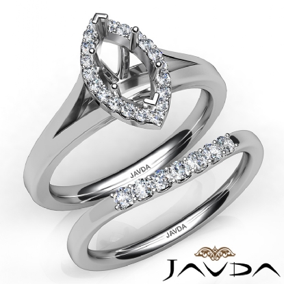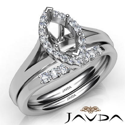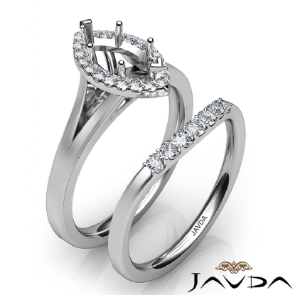 Marquise Diamond U Prong Engagement Semi Mount Ring Bridal Set 18k W Gold (0.4Ct. tw.)