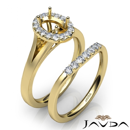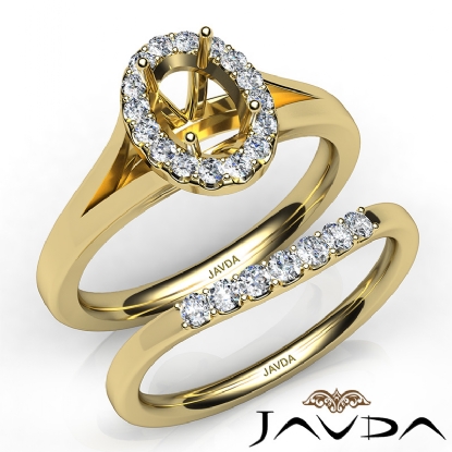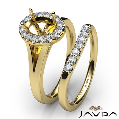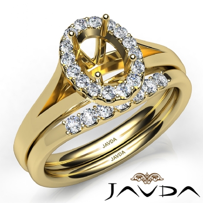 Oval Diamond U Prong Engagement Semi Mount Ring Bridal Set 18k Gold (0.42Ct. tw.)