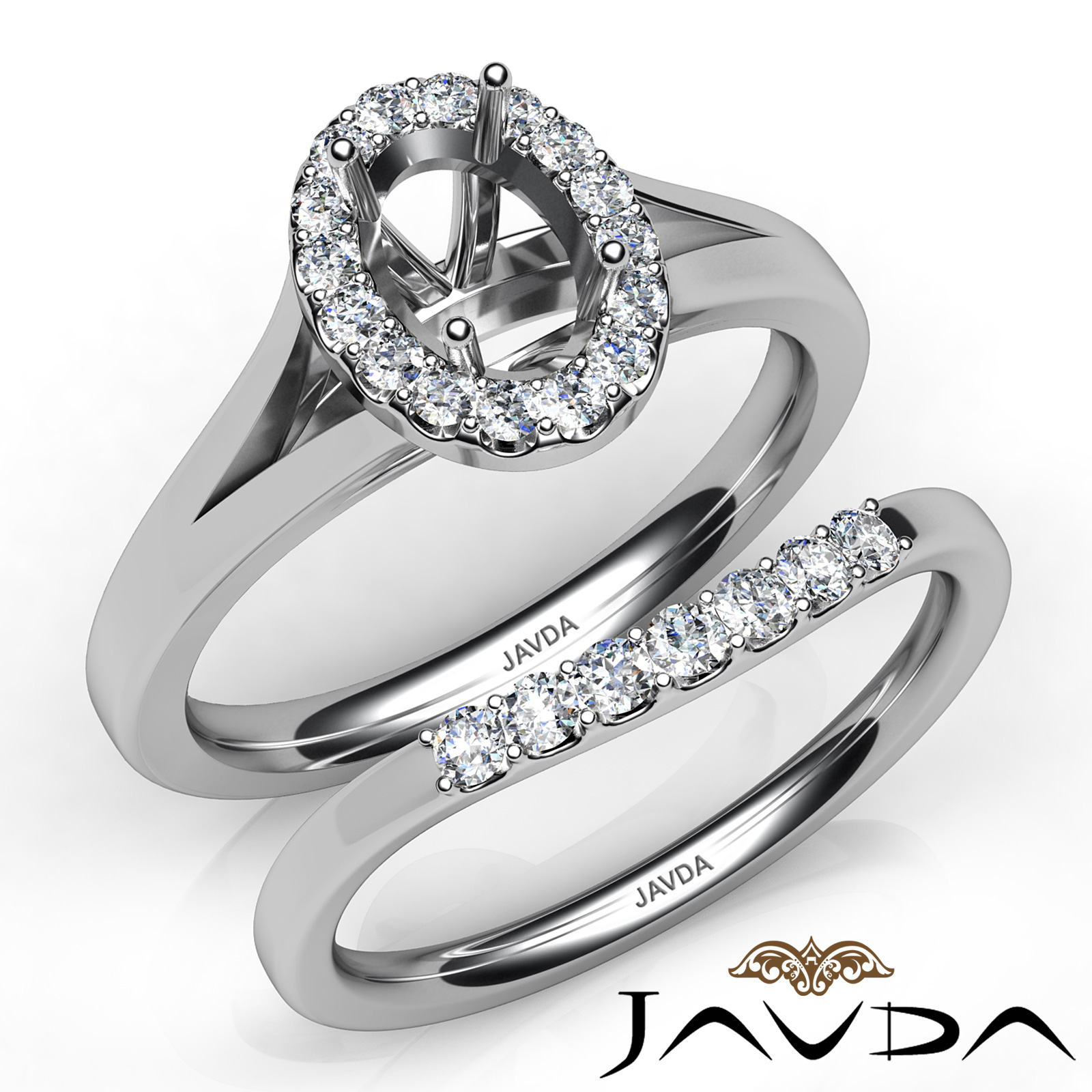 Oval Diamond U Prong Engagement Semi Mount Ring Bridal Set Platinum (0.42Ct. tw.)