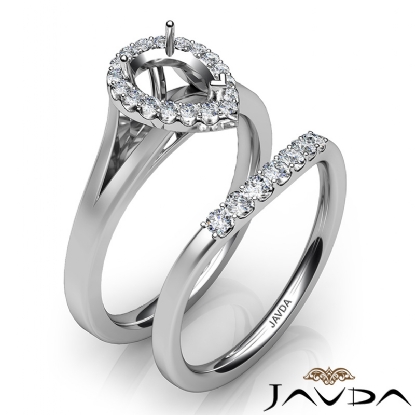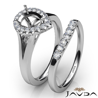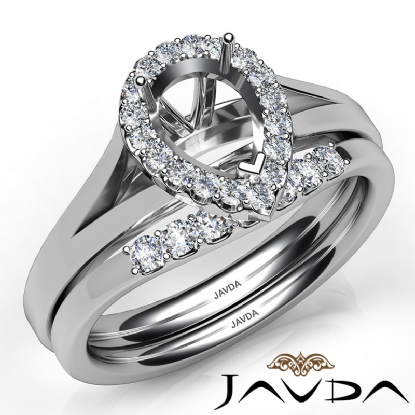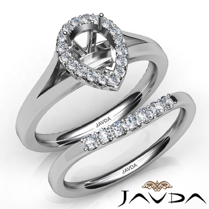 Pear Diamond U Prong Engagement Semi Mount Ring Bridal Set Platinum (0.45Ct. tw.)