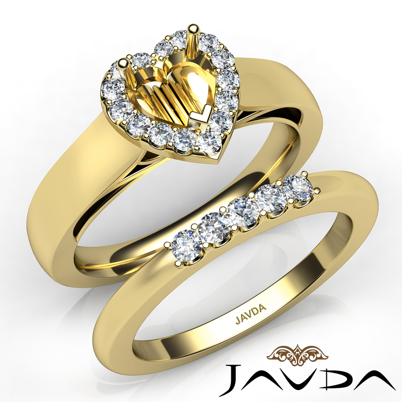 U Prong Diamond Engagement SemiMount Ring Heart Bridal Set 18k Gold (0.4Ct. tw.)